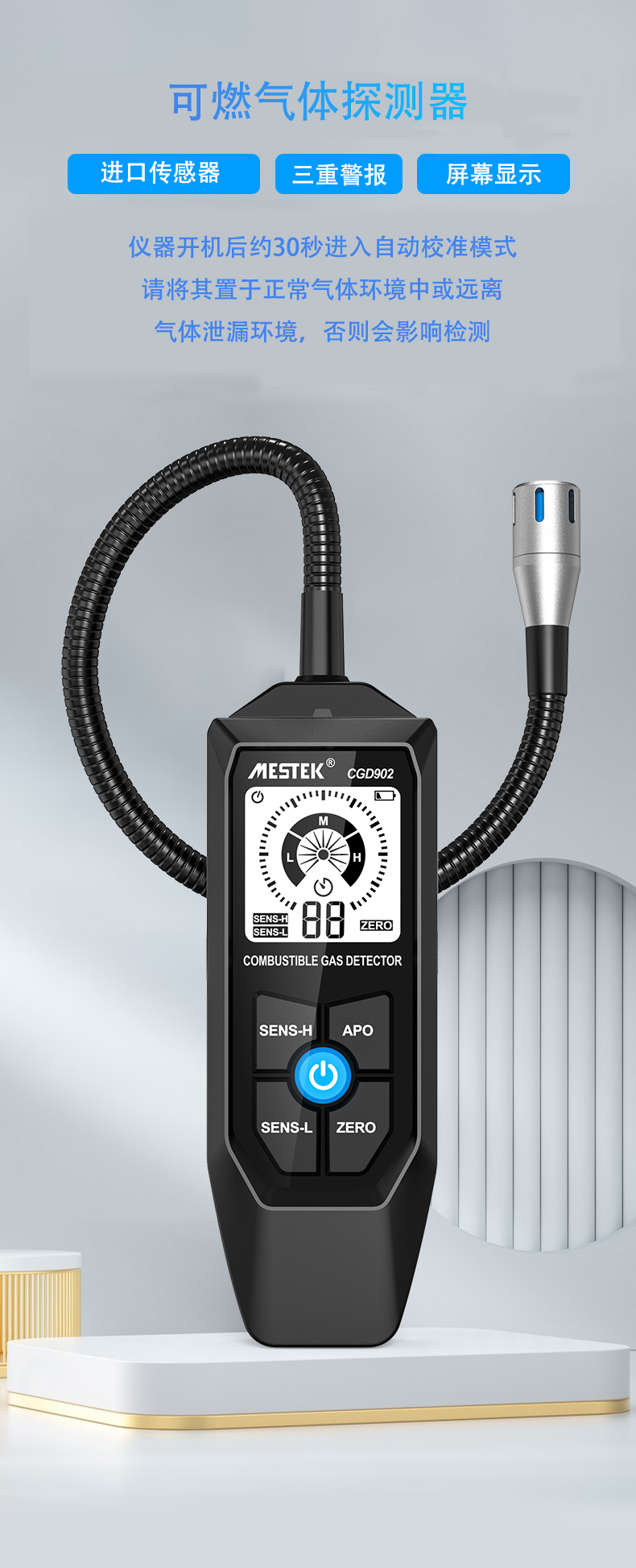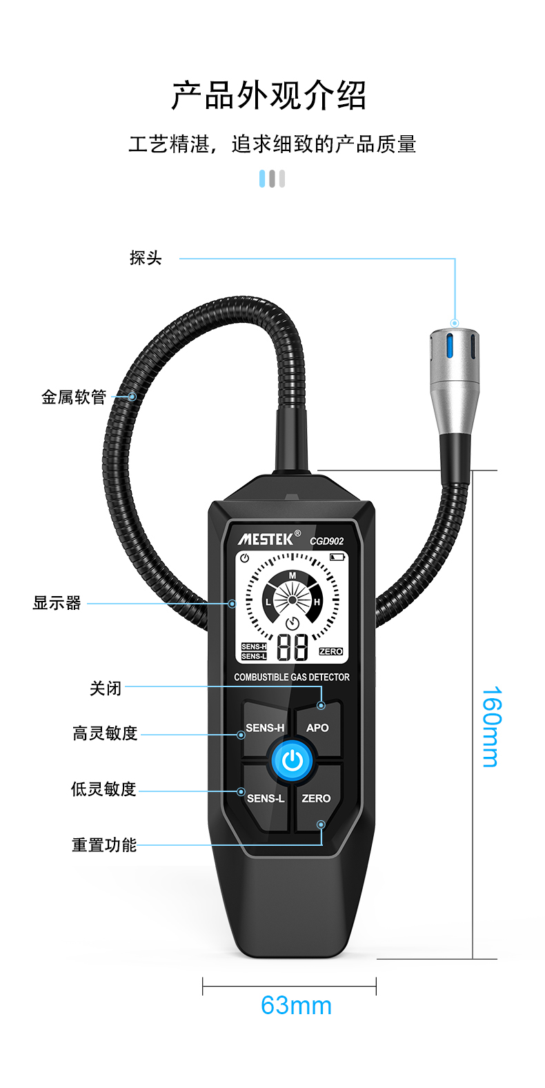 4、高灵敏度测量范围:50~10000ppm